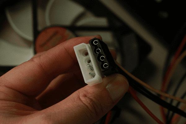 机箱上的散热风扇是这种电源线接头,一个是风扇一头的,一个是电源一头的。