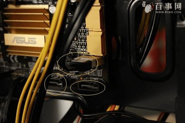电源线是从安装到机箱内的电源上分出来的,数据线直接连在主板的SATA 3 接口上,现在,把它们统统都插好,如下图。