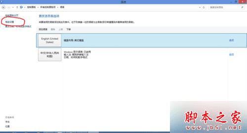 3、找到“时钟、语言和区域”选项,点击下面的“更换输入法”选项,出现更改首选项: