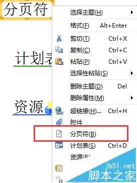 3、或者右击选中的主题,在出现的快捷菜单中点击“分页符”;
