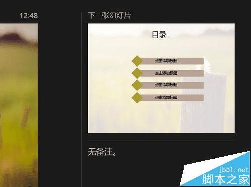 4、在右边我们可以查看下一张幻灯片,在下面的备注里面,我们可以添加我们在答辩时需要的信息,这些信息只有我们能看到,而不会被观众看到啦。