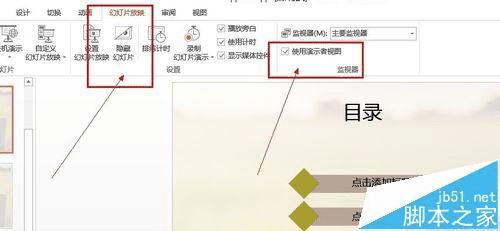 1、首先,请大家打开PPT软件,打开幻灯片放映的选项,然后我们会看到一个使用演示者视图的功能。