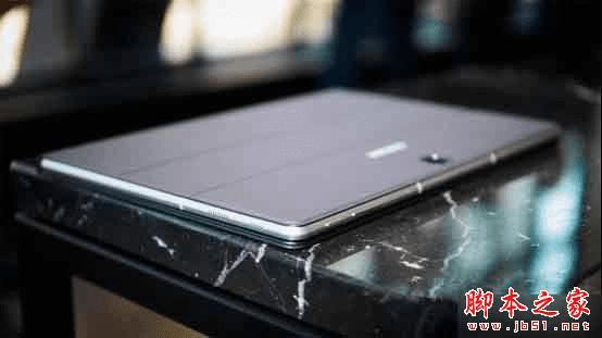 三星Galaxy TabPro S的外形设计还是非常美观的,它大量地借鉴了Galaxy S6智能手机的设计理念,尤其是设备边缘部分的圆滑金属框架打磨。除了耳机插孔和USB-C 3.1之外,Galaxy TabPro S的边框不包含任何其他的插槽。但是,令人遗憾的是,Galaxy TabPro S的机身背面并未像三星Galaxy系列手机那样采用康宁大猩猩4玻璃显示屏,而是采用了磨砂的黑色/白色塑料材质。