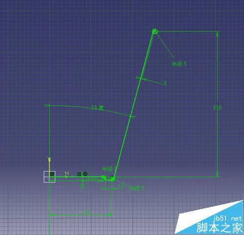 2、选择YZ平面,选择轮廓线,绘制一条如下图的轮廓线。