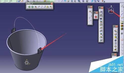 4、绘制水桶的俩个耳朵。按照下图进行绘制。