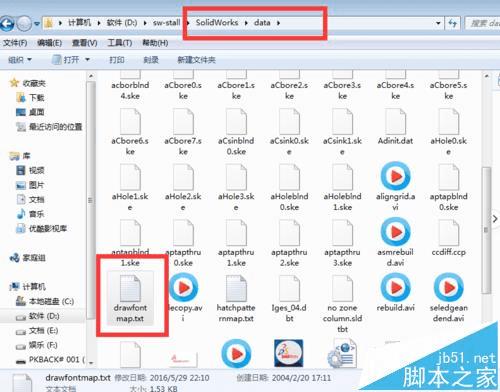 3、对于出现乱码的问题,有两种解决办法,办法一把solidwokrs凡事文字的地方都设置为宋体即可,虽然操作麻烦些但是百试百灵,比较好用,适合于比较懒,出图量不大的朋友,方法而需要找到一个映射文件solidwokrs安装目录下的一个drowfontmap.txt文件 ,然后添加映射字体即可,具体可以看下图,实在不懂这个百度下搜索解决办法,修改后保存文件即可,至此已经把问题解决了