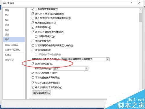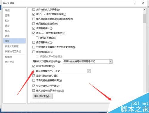 六、在“高级”的右侧窗格中,找到“编辑选项”选项下的“启用“即点即输””选项,并将其给勾选,再点击“确定”按钮。这个即点即输功能就会被开启。如图所示;