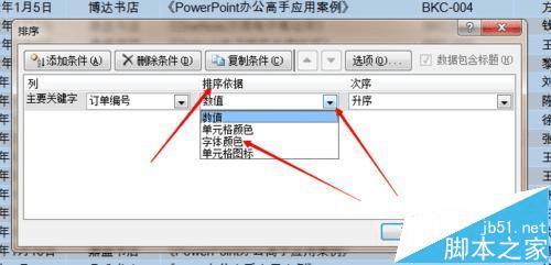 4、排序依据下选择“字体颜色”。