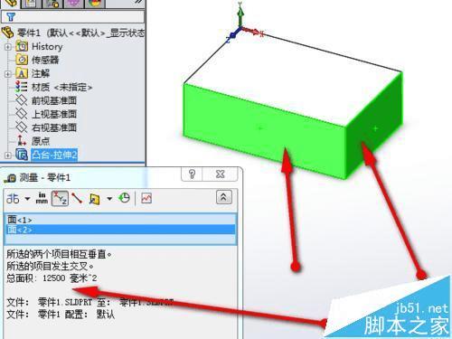将创建的草图拉伸为一个实体,然后点击测量工具,当我们选中两个面的时候我们还可以测量这两个面的面积之和。