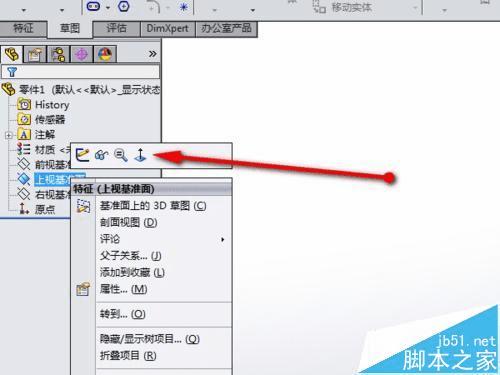 1、打开软件,单击“草图”,右键选择“上视图基准面”。