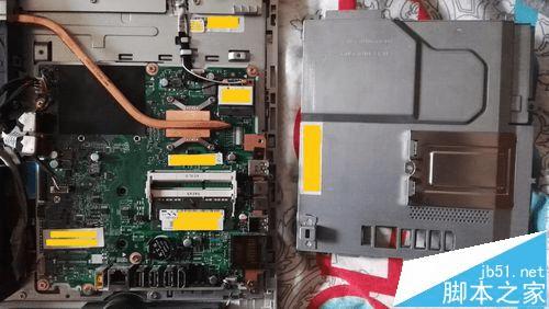 9、以上是拆后盖的部分。讲完了!看上图,看到右边的大铁皮了吗?下面就藏在内存条的插槽。大铁皮方方正正,良心话,联想做工还是不错的!