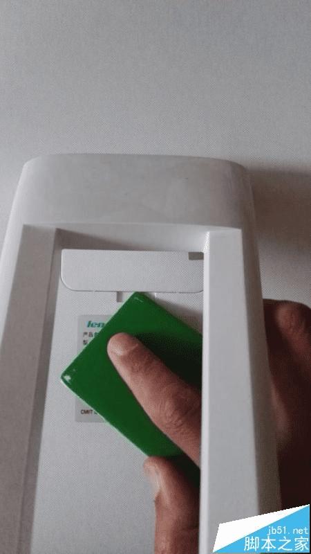 4、最关键的地方,是后面中间支架这里。这里不拆,那么盖子是拿不下来的。一开始没找到这个地方。网上没有提示,这个地方找了好久。看清了吗,就是在支架下面有块薄的小盖子,用银行卡把它撬下来。