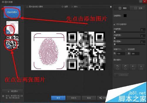5、点击“添加多张图片”进行添加自己的二维码图片,然后在点击图片,可以可以拼接图片了,图片位置可以调节
