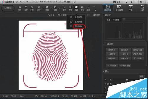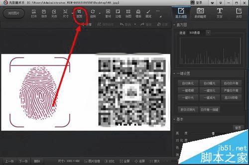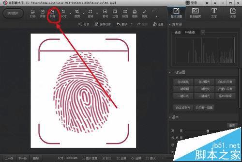 2、点击上面的裁剪功能,然后把指纹这部分裁剪下来