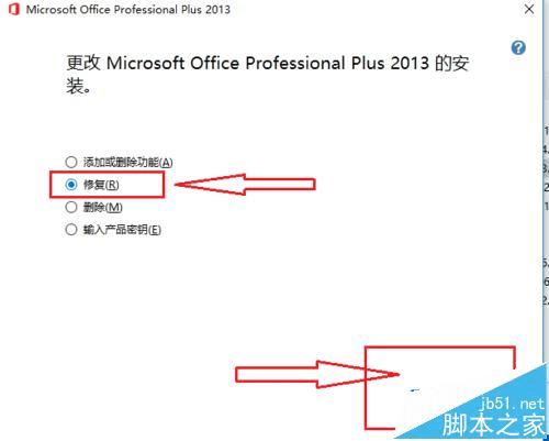 4、选择“修复(R)”选项,记得再点击继续,如图