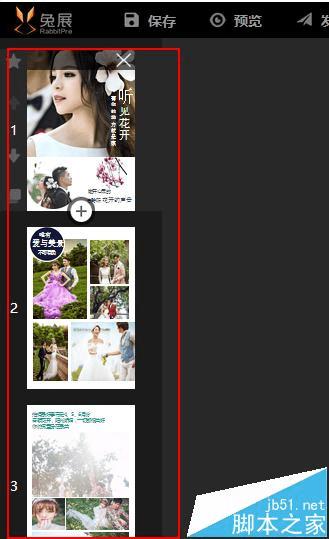 2。进入制作编辑里面,左边红色框框里面是你的作品页数,可以自由删减,左上角是保存和发布,然后页面右边是编辑器的各种功能和工具,可以根据你的喜好任意做修改哦。