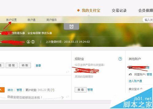 4、来到支付宝首页,我这里没有使用新版,点击“账户设置”