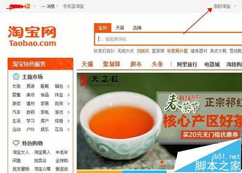 2、登录进来后,来到淘宝首页,看最上面一行导航,点击“我的淘宝”