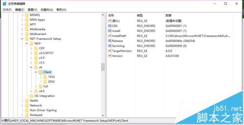 2、找到HKEY_LOCAL_MACHINE\SOFTWARE\Microsoft\NET FrameworkSetup\NDP\v4\Client