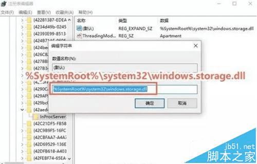 2、之后找到“HKEY_CLASSES_ROOT\Wow6432Node\CLSID\{42aedc87-2188-41fd-b9a3-0c966feabec1}\InProcServer32\和HKEY_CLASSES_ROOT\CLSID\{42aedc87-2188-41fd-b9a3-0c966feabec1}\InProcServer32\”,之后将其数值数据替换为“%SystemRoot%\system32\windows.storage.dll”。