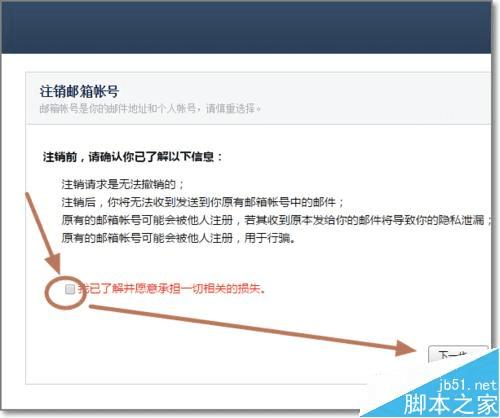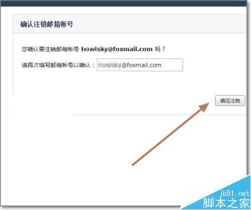7、同时,还需要再次输入一次foxmail.com域名后缀的邮箱地址,再次确认注销,如此这个邮箱账号将被解除使用。