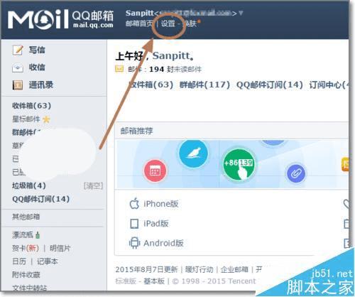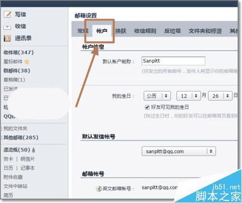 2、在设置中,点击账户,进入邮箱帐户设置。