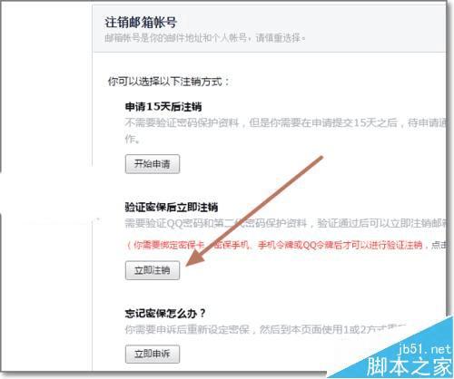 4、注销foxmail.com域名后缀的邮箱有三种验证方式,若需要马上验证可以选择第二种。