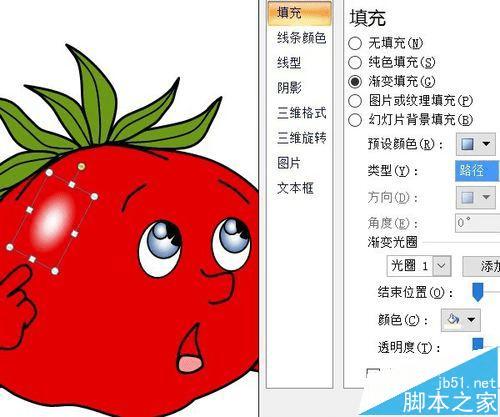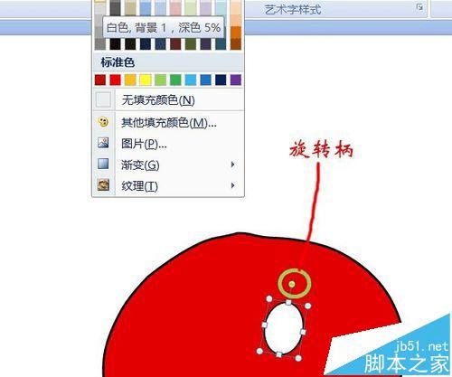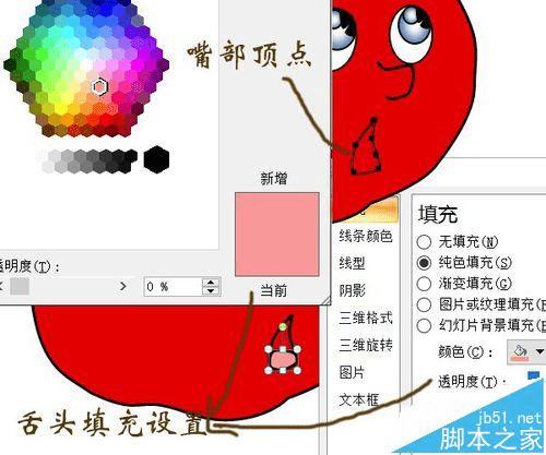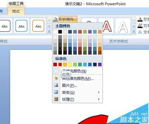 5、绘图工具——形状填充——红色,将面部填充上红色。