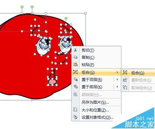 12、拖动拉出选择框选中全部,右键组合。这一步防止无意的拖动会改变五官位置。组合栏里可取消组合。