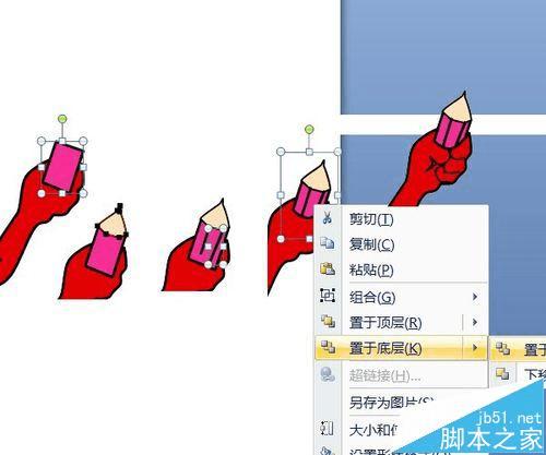 15、绘制铅笔。首先绘出一个矩形,再绘出铅笔头、棱线。组合,置于底层。手上绘出细节线条。