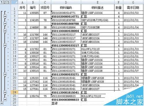 1、如下图的汇总结果,如果只想提取第2级的物料编码汇总结果,以下操作是不能达到目的的:点击2级别,复制,粘贴。