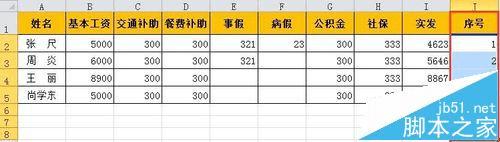 5、如果在每个员工之间加空一行,又该怎样操作呢?在序号一列数据下方定光标输入如下内容: