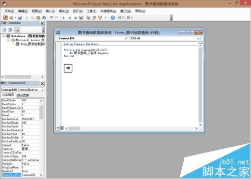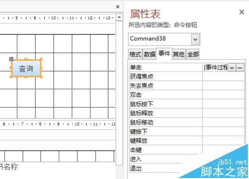 2、关键是这个查询按钮。新建一个按钮,重命名为查询。在其属性表里,点击“单击”最后面的那三个点。