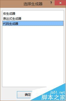 3、弹出下图的“选择生成器”,选择“代码生成器”项。