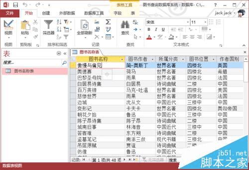 先来准备好我已经做好的一个表:图书名称表,字段有:图书名称,图书作者,图书类别,等等。