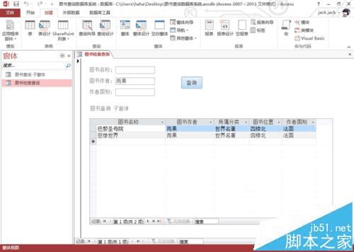 楼主学习了一个学期的Microsoft Office Access选修课,期末作业是做一个Access数据库管理系统。我也不想做复杂了,简单的就是一个表,一个查询,一个窗体完事。在窗体中可以实现查询:图书查询。下面用2013版本一步一步详解。