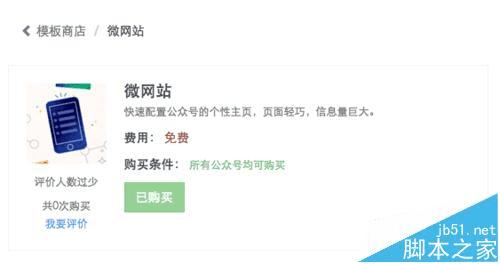 3、选择『微网站』进入购买页面,完成购买。(仅完成购买流程,该功能免费,不需要充值或付费)