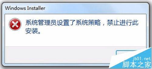 安装工行网银控件或网银助手等软件时,弹出Windows Installer错误提示窗口:系统管理员设置了系统策略,禁止进行此项安装。