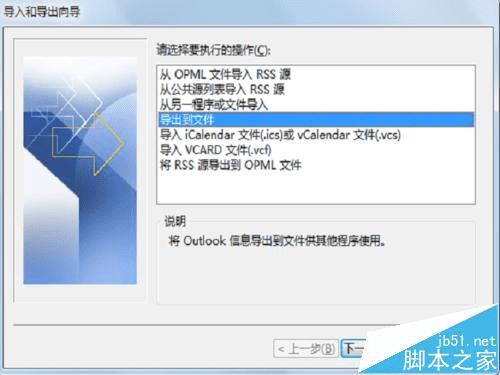 4、在下一个界面中选择<导出至文件>功能,并在后一个页面选择创建文件时,选择逗号分隔值类型。如果是要导入就选择从其它程序导入文件选项