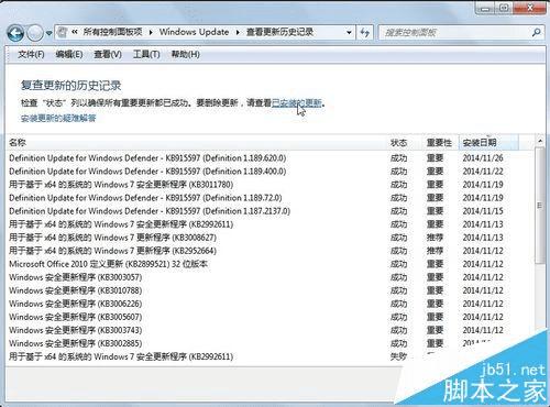 3、在打开的窗口中点击左边的“查看更新历史记录”