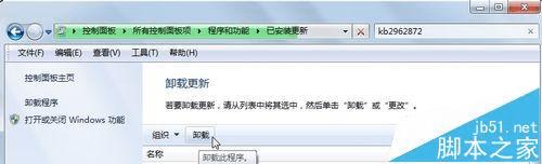 6、找到kb2962872后,点击上方的卸载按钮进行卸载