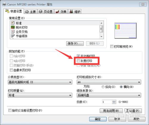佳能彩色喷墨打印机打印黑白图片的步骤