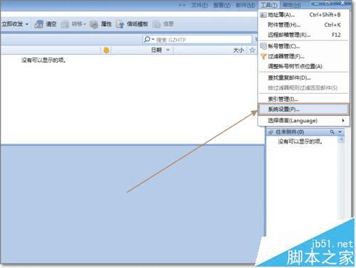 2、打开Foxmail邮箱客户端,标题上,工具---系统设置---进入系统设置窗口