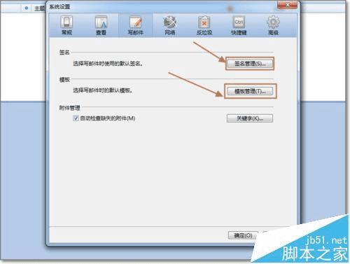 5、回到系统设置选项卡,选择模板管理,可以进行写邮件的模板设置,新邮件使用什么模板,回复,转发分别又使用什么样的模板都可以设置。