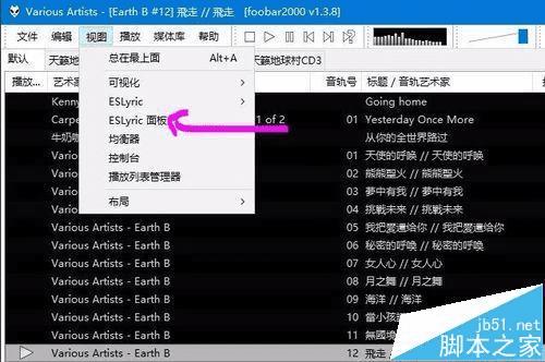 2、在“视图”菜单内可以看到ESLyric以及ESLyric面板的菜单,选择ESLyric面板。