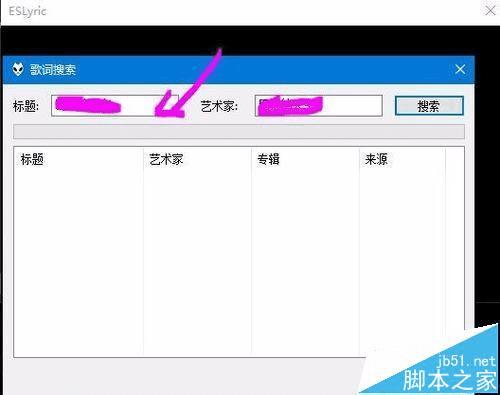 4、在歌词搜索内输入正在播放的歌词的曲目,标题输入:歌曲名,艺术家输入:演唱者,点击搜索即可。