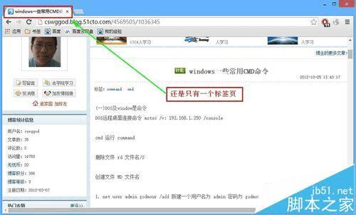 4、进入搜索结果页,注意,现在只有一个标签页,如下图所示: