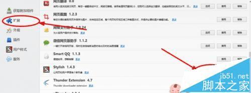 4、这时我们回到下图所示的地方,点击扩展,找到Stylish,点击选项。进去之后点击管理样式