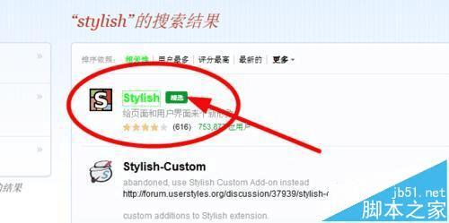 3、搜索之后可能出现的结果并不很多,这时我们点击查看全部的结果,在新出现的网页中找到Stylish,并添加。