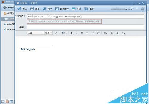 Foxmail是目前用于邮件收发的主流工具之一。有时候我们想群发一封邮件,但是不希望收件人之间相互能看到彼此的信息。这时候,怎样利用Foxmail自带的群发功能来设置分别发送,让每个联系人都能够单独的收到该封邮件呢?